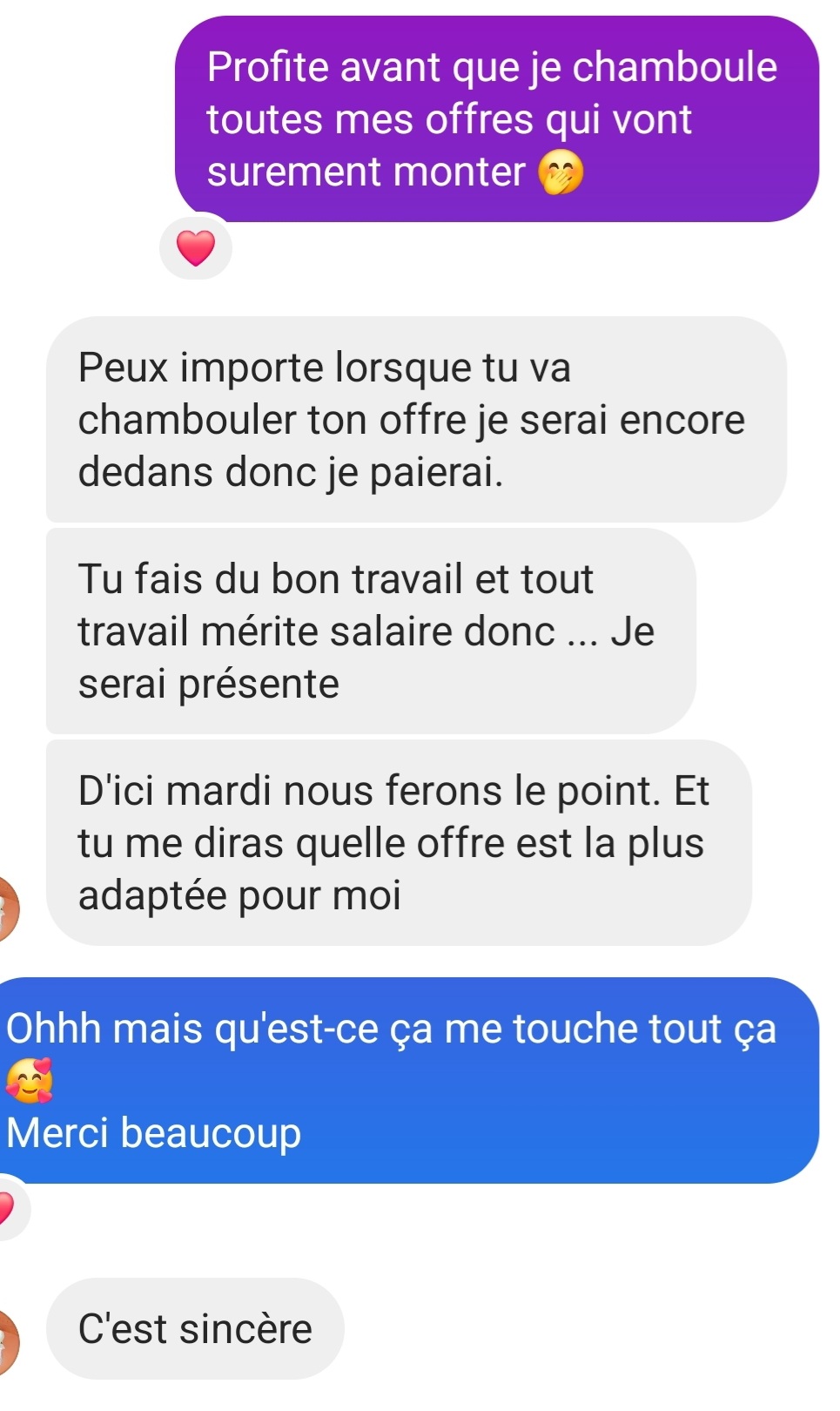 Dans 1 semaine, tu auras des prix qui te respectent.