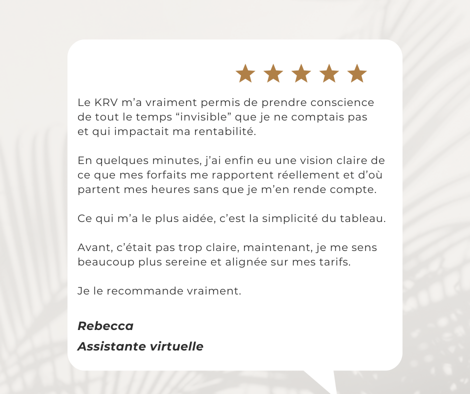 Reçois immédiatement le KRV dans ta boîte mail. Compatible Excel, LibreOffice (version gratuite), utilisable sur ordinateur.